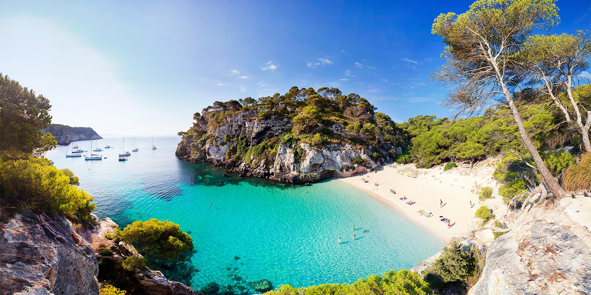 Menorca is a small piece of paradise within the western Mediterranean, a pearl bathed by calm seas and sheltered by a gentle climate. An unending range of colours melt into each other: blue skies, turquoise seas, dark green woods, brown rocks, white beaches.